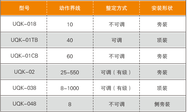 UQK-(UQK-B)型系列產(chǎn)品種類